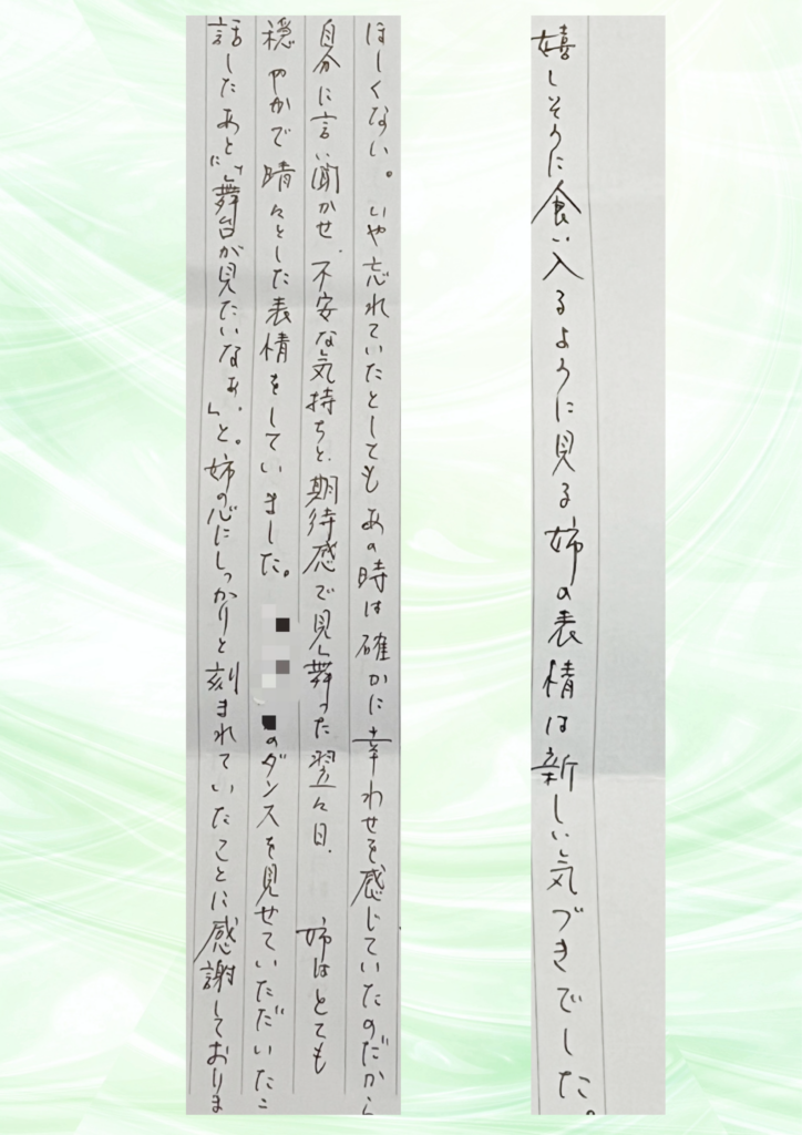 「母は、まるで青春時代に戻ったようでした。」-ご家族様より