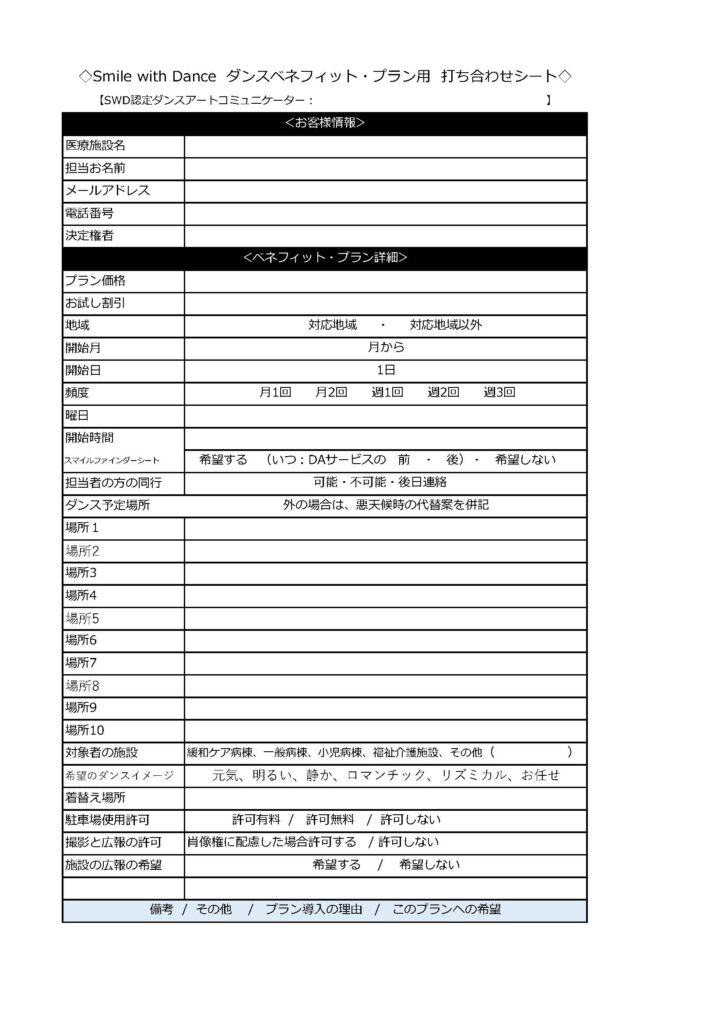 <ダンスベネフィット・プラン>打ち合わせチェックシートのサンプル